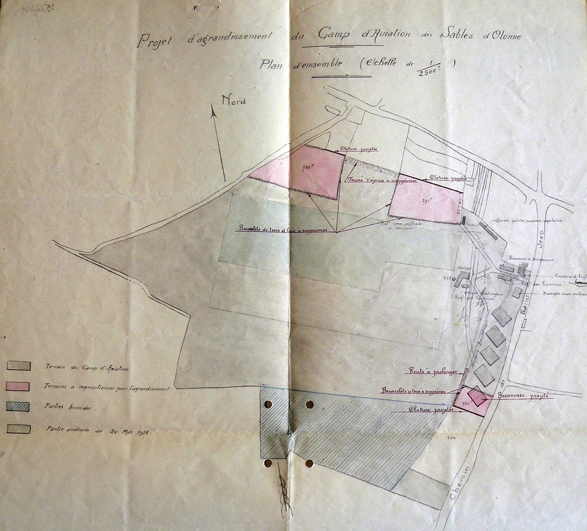 Les premiers travaux d’aménagement du champ d’aviation de La Lande ont été entrepris au printemps 1914 sur la commune de Château d’Olonne.